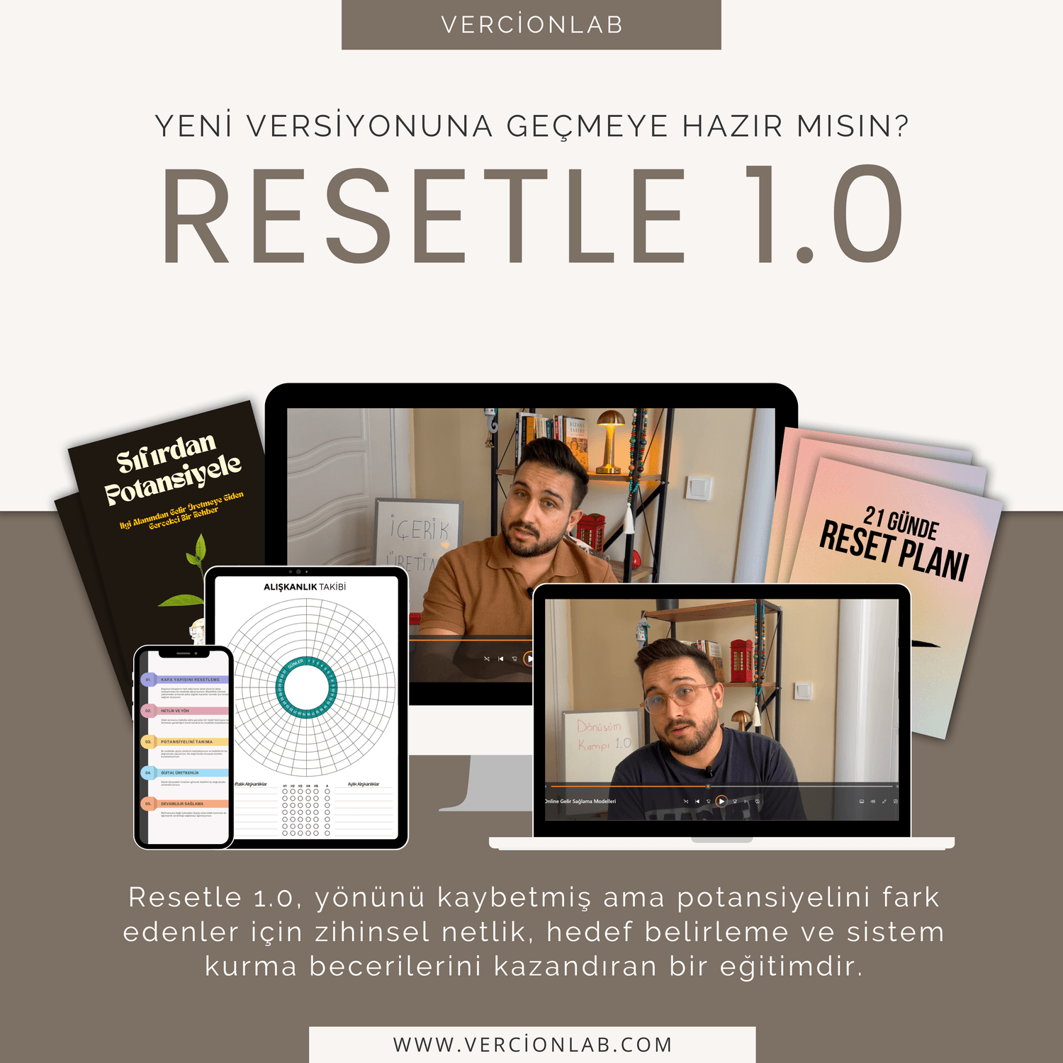 Resetle 1.0, hayatını baştan yazmayı değil; kafanı toparlamayı, ne istediğini netleştirmeyi ve sürdürülebilir bir düzen kurmanı hedefleyen sistemli bir süreçtir.